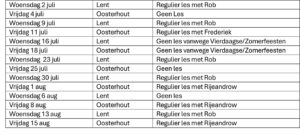 We hebben een compleet zomerrooster voor jullie opgesteld om alles zo duidelijk mogelijk te communiceren.