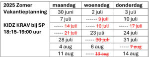 Krav Maga Tieners en Kidz | 9 juli t/m 13 augustus Zomerrooster: | Woensdag: 18:30-19:15 Kidz Krav 19:15-20:00 Tiener Krav